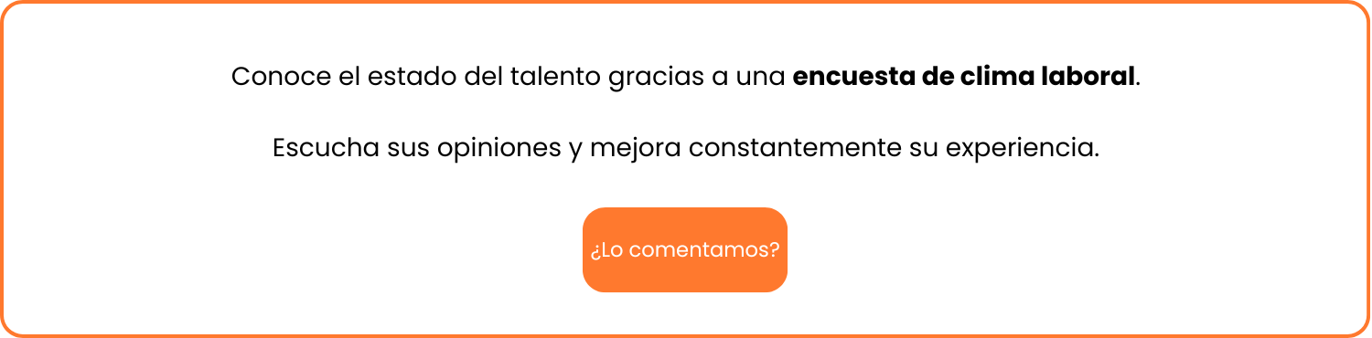 Como hemos mencionado, la encuesta de clima nos ayuda a medir las inquietudes de las personas que forman parte de nuestra organización, los aspectos con los que se sienten más o menos cómodas y, en definitiva, su motivación en el entorno laboral.